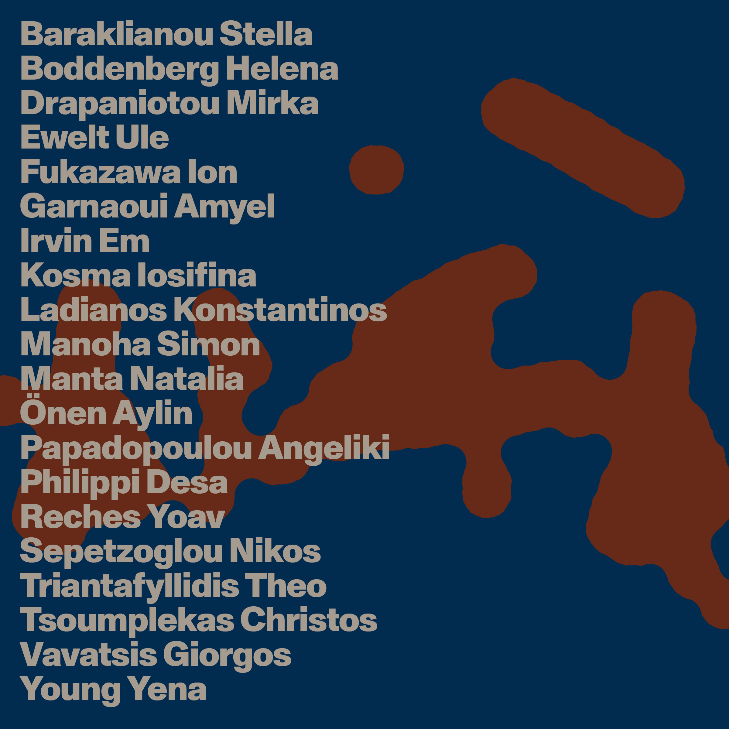 Γιώργος Βαβάτσης | Helena Boddenberg | Μίρκα Δραπανιώτου | Ule Ewelt | Ion Fukazawa | Amyel Garnaoui | em irvin | Ιωσηφίνα Κοσμά | Κωνσταντίνος Λαδιανός | Simon Manoha | Ναταλία Μαντά | Στέλλα Μπαρακλιανού | Aylin Önen | Αγγελική Παπαδοπούλου | Desa Philippi | Yoav Reches | Νίκος Σεπετζόγλου | Θεόκλητος Τριανταφυλλίδης | Χρήστος Τσουμπλέκας | Yena Young