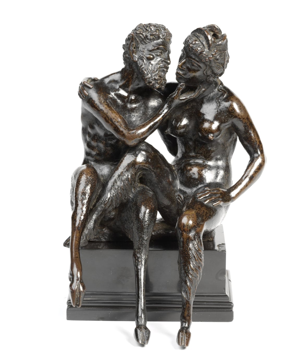 Στην ελληνική και ρωμαϊκή μυθολογία, οι σάτυροι είναι ακόλουθοι του θεού του κρασιού Βάκχου με πόδια τράγων, τριχωτοί λάτρεις του σεξ, του χορού και της έκστασης. Στην αναγεννησιακή τέχνη είναι περπατούντα πέη, ενσαρκώσεις της λαγνείας, που κυνηγούν νύμφες ή κατασκοπεύουν κοιμισμένες θεές. Εδώ, ωστόσο, ο λαμπρός τεχνίτης Ρίτσιο φαντάζεται ένα ζευγάρι σατύρων, να αγκαλιάζονται τρυφερά σε κάποια γαλήνια γωνιά του δάσους. Όντας μισοί τράγοι, είναι όλοι επιθυμία. Ο έρωτας είναι άγριος.