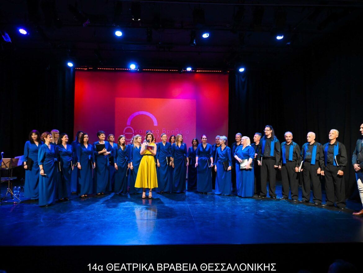 Με την έναρξη της βραδιάς, και ενώ νωρίτερα το κοινό είχε την ευκαιρία να παρακολουθήσει στην οθόνη μια πλήρη αναδρομή όλων των θεατρικών παραστάσεων της χρονιάς, η αυλαία άνοιξε εντυπωσιακά με την εμφάνιση της πολυμελούς Μικτής Χορωδίας του ΟΤΕ. Υπό τη διεύθυνση του μαέστρου Ηρακλή Παναγόπουλου και με τον Δημήτρη Τσακιρίδη στο πιάνο, οι χορωδοί ερμήνευσαν με άψογη τεχνική και συγκίνηση διαχρονικά τραγούδια του σπουδαίου Μίκη Θεοδωράκη, τιμώντας τη συμπλήρωση 100 χρόνων από τη γέννησή του.