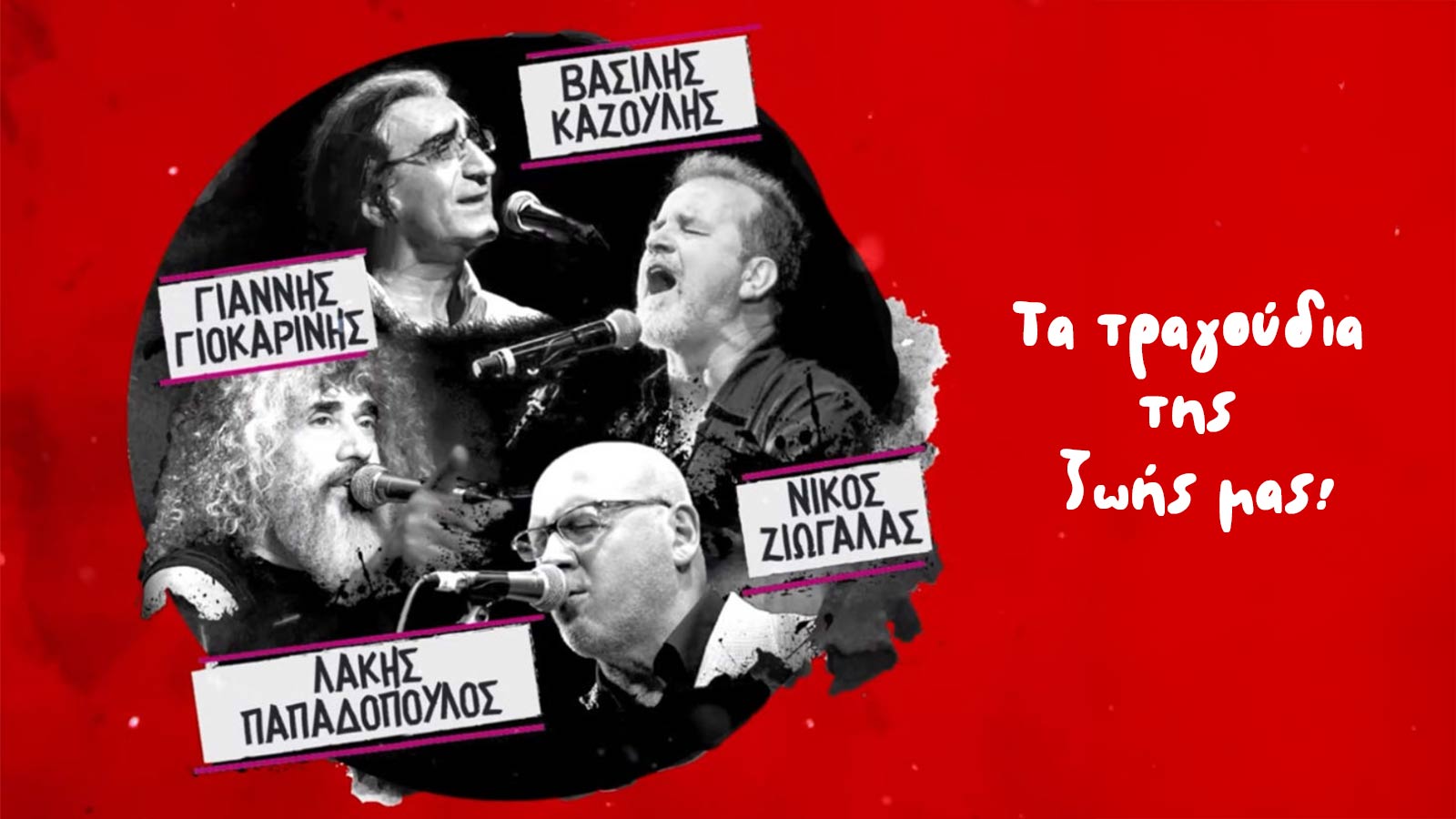 Ο Γιάννης Γιοκαρίνης, ο Νίκος Ζιώγαλας, ο Βασίλης Καζούλης και ο Λάκης Παπαδόπουλος—τραγουδοποιοί, στιχουργοί και συνθέτες—μας προσκαλούν σε μια ηλεκτρική βραδιά. Πολυσχιδείς φυσιογνωμίες, άλλοτε σκωπτικοί και άλλοτε με υπέροχες μελαγχολικές μπαλάντες, θα φέρουν στη σκηνή τις αμέτρητες επιτυχίες τους που αγαπήθηκαν από γενιές.