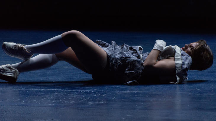 Όλοι οι ηθοποιοί γεμίζουν τη σκηνή καθιστοί σε συρόμενα γραφειάκια συνδεδεμένοι με υπολογιστές και φορώντας λαμπερά κοστούμια που παραπέμπουν σε εργαστήρι φερμένο από το μέλλον. Στη διάρκεια της παράστασης οι θέσεις τους εναλλάσσονται στον χώρο, άλλοτε συσπειρώνονται όταν συνεδριάζουν, άλλοτε παίρνουν τις θέσεις τους όταν παίρνουν και δίνουν το λόγο, άλλοτε κάνουν χορευτικές κινήσεις, άλλοτε ξαπλώνουν στο πάτωμα ονειρεύονται και φαντασιώνονται όπως η Σάρρα, η μοναδική όπως αναφέρει η Σκηνοθέτης ανθρώπινη παρουσία ανάμεσα στις μηχανές. Όλα τα παραπάνω στοιχεία κεντρίζουν το ενδιαφέρον του θεατή να θέλει να μάθει βρισκόμενος κι αυτός με τη σειρά του σε συνεχή εγρήγορση καθώς έτσι γρήγορα κινείται κι όλος ο θίασος στη σκηνή.