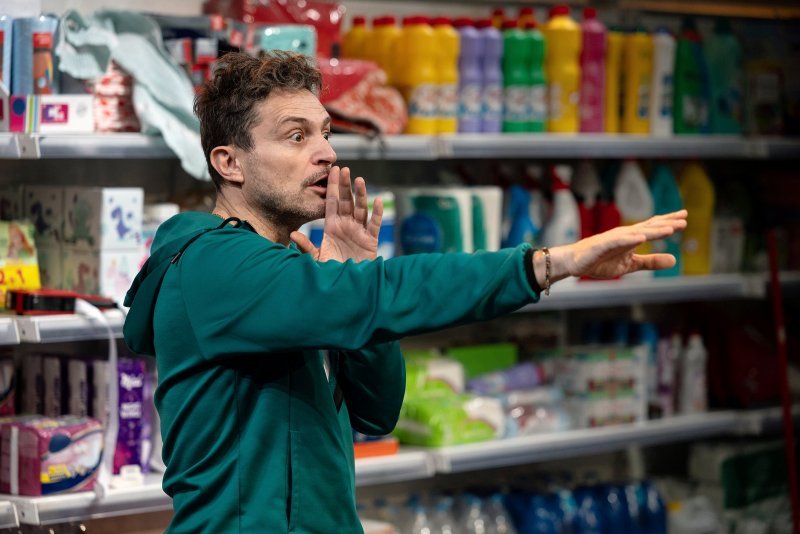 Η σκηνοθεσία του Ραπτοτάσιου μοιάζει να εγκλωβίζεται σε έναν εντυπωσιασμό που τελικά στερεί από το έργο την ανάσα του. Η μεταφορά της δράσης σε ένα περιβάλλον σούπερ μάρκετ, ενώ στα χαρτιά φαντάζει ως μια δήλωση για τον σύγχρονο καταναλωτισμό της ανθρώπινης απελπισίας, στην πράξη λειτουργεί ως ένας θορυβώδης αντιπερισπασμός. Αντί η σκηνοθεσία να φωτίσει τις εσωτερικές διαδρομές του Τσέχωφ, μοιάζει να στήνει έναν στίβο μάχης για να δούμε αν ο πρωταγωνιστής θα αντέξει μέχρι το τέλος. Είναι μια προσέγγιση που ποντάρει περισσότερο στο ‘φαίνεσθαι’ της δυσκολίας και λιγότερο στην ουσία του κειμένου.