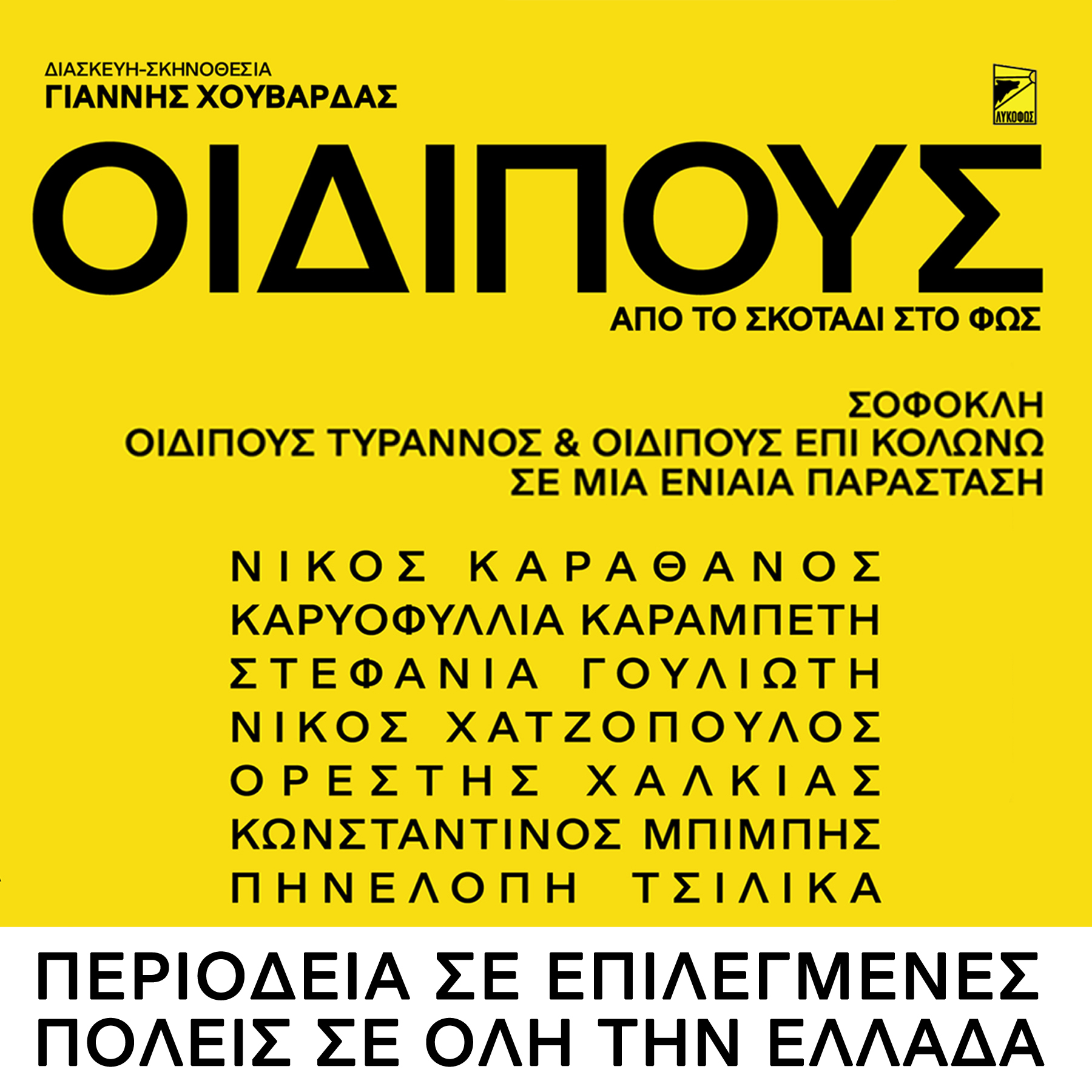 Δύο από τα πιο δημοφιλή και συγκινητικά έργα της αρχαίας γραμματείας, ο «Οιδίπους Τύραννος» και ο «Οιδίπους επί Κολωνώ» του Σοφοκλή, παρουσιάζονται φέτος το καλοκαίρι με τη μορφή ενιαίας παράστασης, στην Ελλάδα και το εξωτερικό, με την υπογραφή του Γιάννη Χουβαρδά, σε μια παραγωγή υψηλών προδιαγραφών από το Φεστιβάλ Αθηνών Επιδαύρου και τον Πολιτιστικό Οργανισμό ‘Λυκόφως’, που τιμά τα 70 χρόνια του ιστορικού θεσμού.