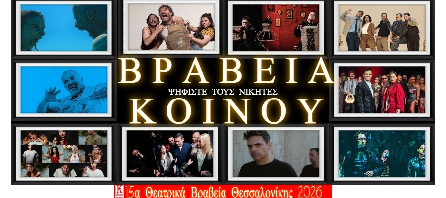 Η Οργανωτική Επιτροπή των 15ων Θεατρικών Βραβείων Θεσσαλονίκης μετά τη δημοσίευση Υποψηφιοτήτων Κριτικής Επιτροπής & Κοινού (δείτε εδώ) προκηρύσσουν τη 3η και τελευταία ανοιχτή ηλεκτρονική ψηφοφορία κοινού δίνοντας τη δυνατότητα σε όλους τους θεατρόφιλους να διαμορφώσουν με την δική τους ψήφο και χωρίς καμία εμπλοκή παραγόντων και επιτροπής, τους τρεις νικητές των ΒΡΑΒΕΙΩΝ ΚΟΙΝΟΥ 2026