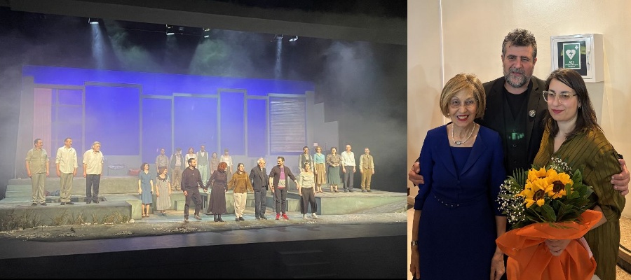 Η Πρόεδρος του ΚΘΒΕ Γιαννούλα Καρύμπαλη-Τσίπτσιου, ο Καλλιτεχνικός Διευθυντής του ΚΘΒΕ Αστέρης Πελτέκης ο συγγραφέας Γιώργος Σκαμπαρδώνης μαζί με τους συντελεστές και τους ηθοποιούς της παράστασης.