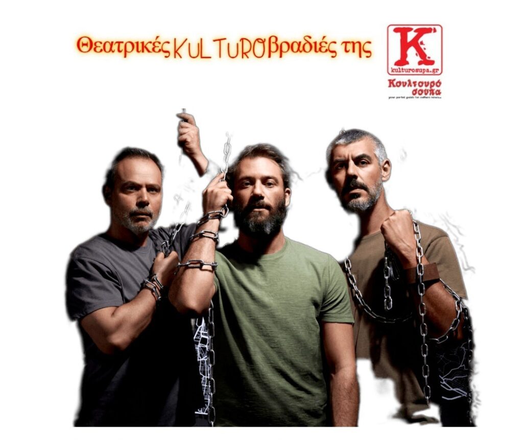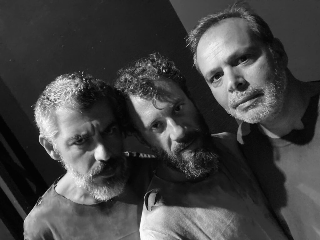 Απέναντί μας οι τρεις ηθοποιοί Αντίνοος Αλμπάνης, Σωτήρης Σκάντζικας, Δημήτρης Παπαγεωργίου, εντυπωσιακά διαθέσιμοι και ευδιάθετοι για συζήτηση, λες και δεν ήταν αυτοί που πριν μερικά λεπτά «έβγαλαν τα σωθικά» τους στη σκηνή, κάνοντας τον θεατή να αναρωτιέται «μας πώς καταφέρνουν το μαγικό;» Και βέβαια από εκεί πιάσαμε την κουβέντα, για να συνεχίσουμε μπαίνοντας στα ενδότερα τόσο της ανανεωμένης παράστασης, όσο και του καυτού θέματός της, που πυροδότησε διαλόγους με βάθος και ουσία… γιατί στην προφανή ερώτηση «πόσο αφορά τον σημερινό θεατή», τα σχόλια ήταν καταιγιστικά από πλευράς συντελεστών και θεατών, καθώς το έργο μοιάζει ανατριχιαστικά επίκαιρο αν αναλογιστούμε τον πρόσφατο και συνεχιζόμενο πόλεμο στη Λωρίδα της Γάζας με αιχμαλωσίες αθώων ομήρων εκατέρωθεν ως «διαπραγματευτικό χαρτί», δηλαδή ακριβώς η συνθήκη που περιγράφει το έργο και «προσωποποιεί» συγκλονιστικά ένα δράμα το οποίο φτάνει στα αυτιά μας ως μακρινή απρόσωπη είδηση…